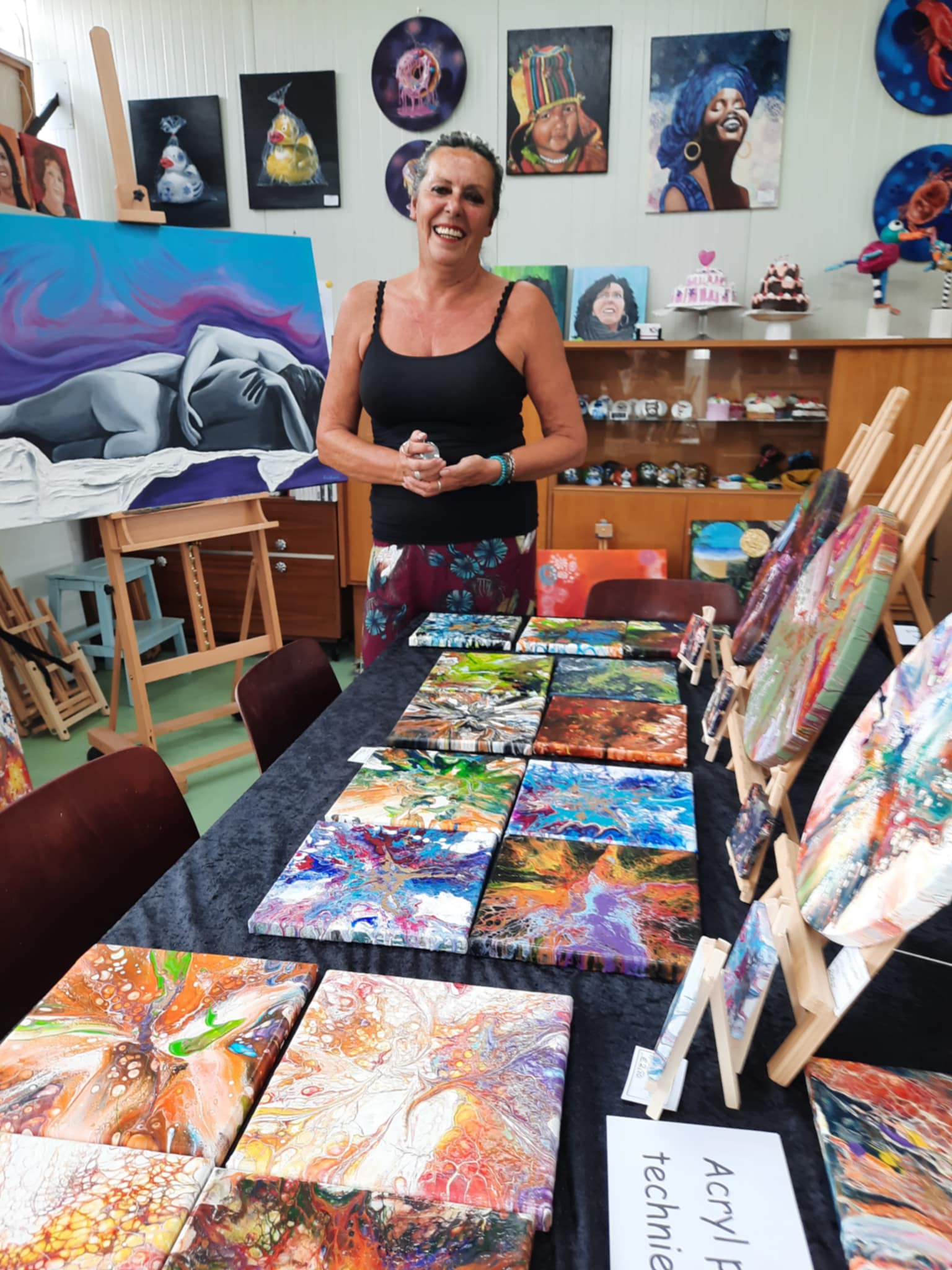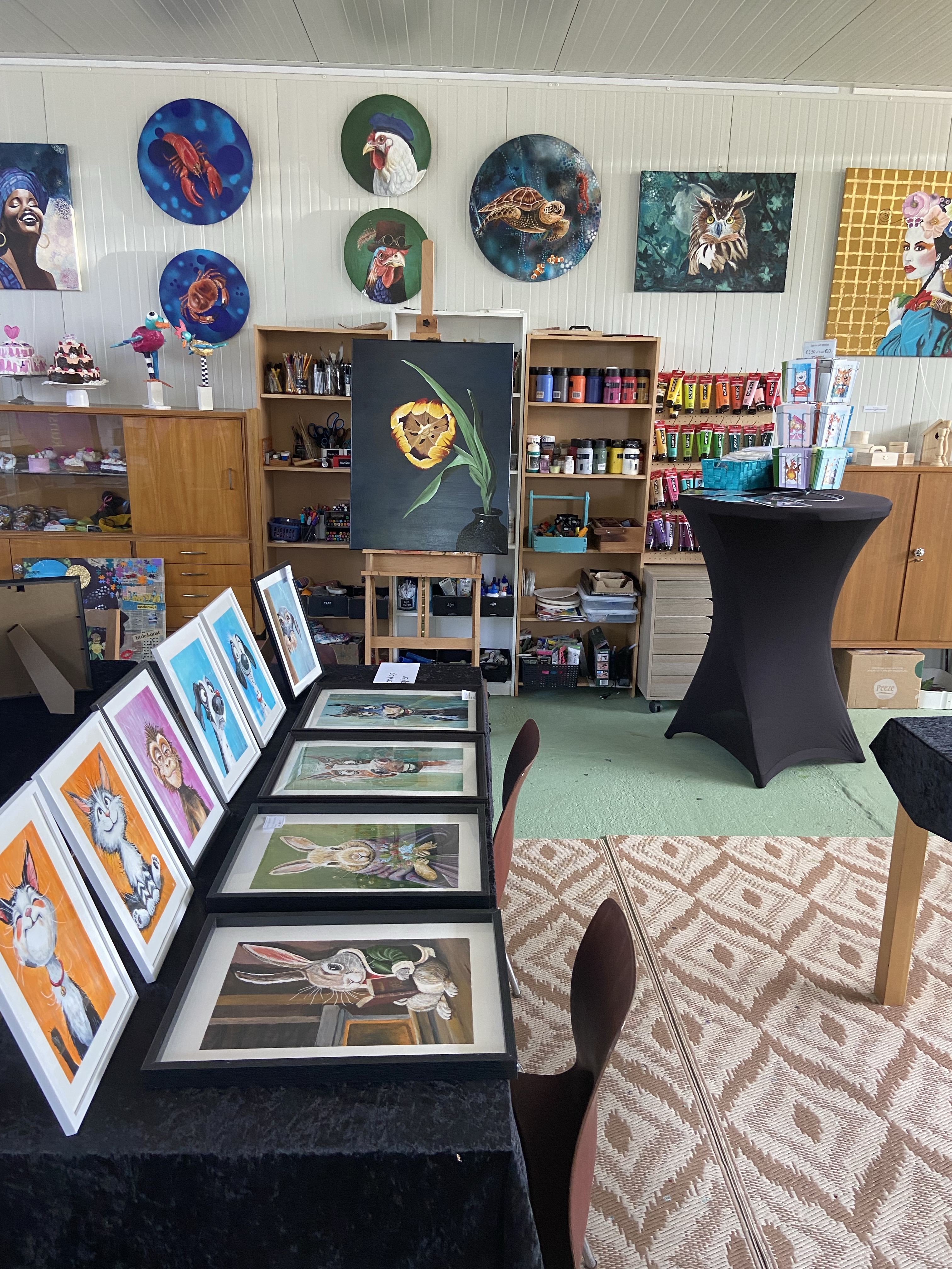 Elke dinsdag van 10.00u tot 12.30 u en /of 19.00u tot 21.30 u kun je gezellig creatief bezig zijn. Onder begeleiding van mij kun je alle materialen eens uitproberen en/of je mooiste schilderij maken. Je kan ook zelfstandig aan de slag met jouw wensen en ideeën. Onder het genot van koffie of thee kun je het eerst eens vrijblijvend uit proberen om dan een strippen kaart te kopen van 5 ( € 100 ) of 10 keer ( €200 ) .