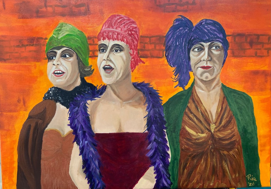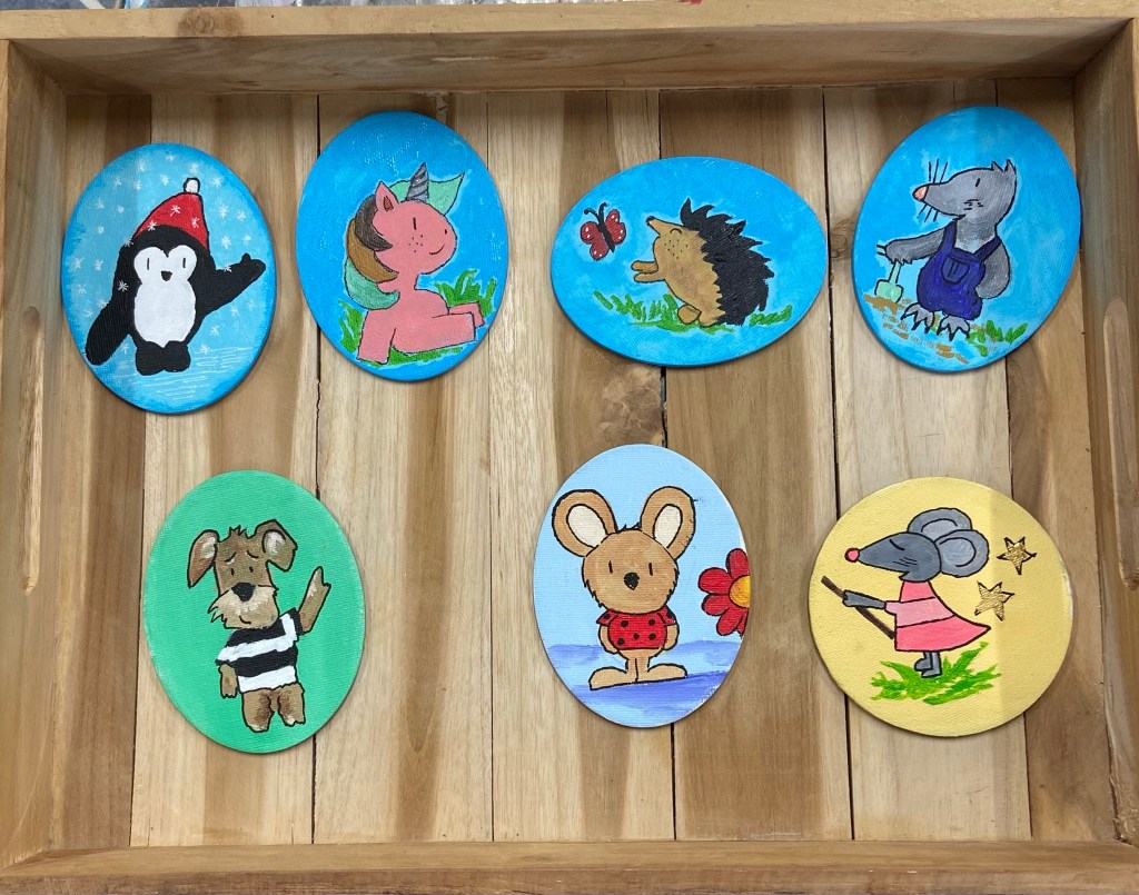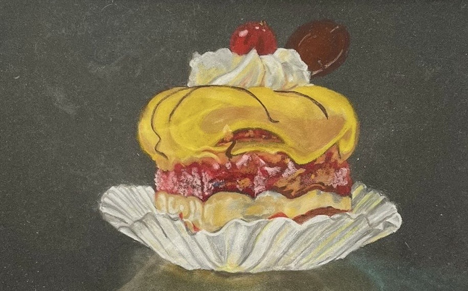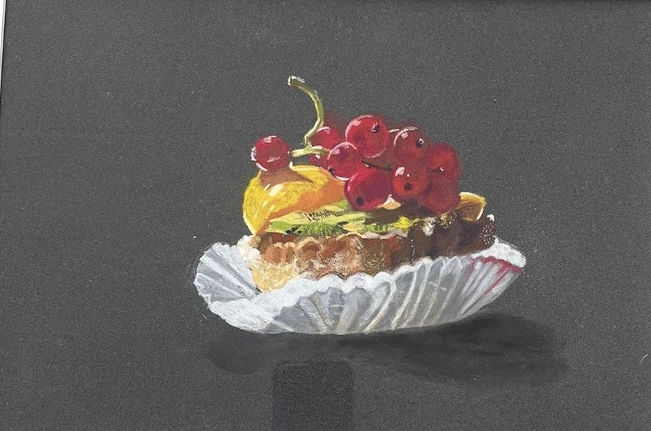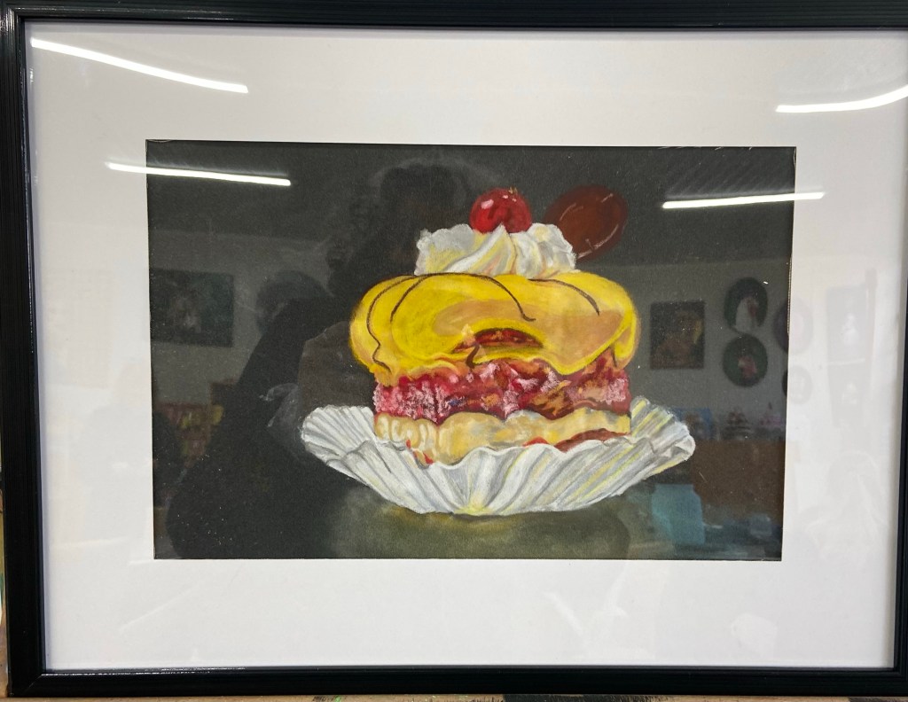 De foto’s zijn wat scheef maar een mooi aquarel door Joska geschilderd en een pasteltekening door Margareth gemaakt