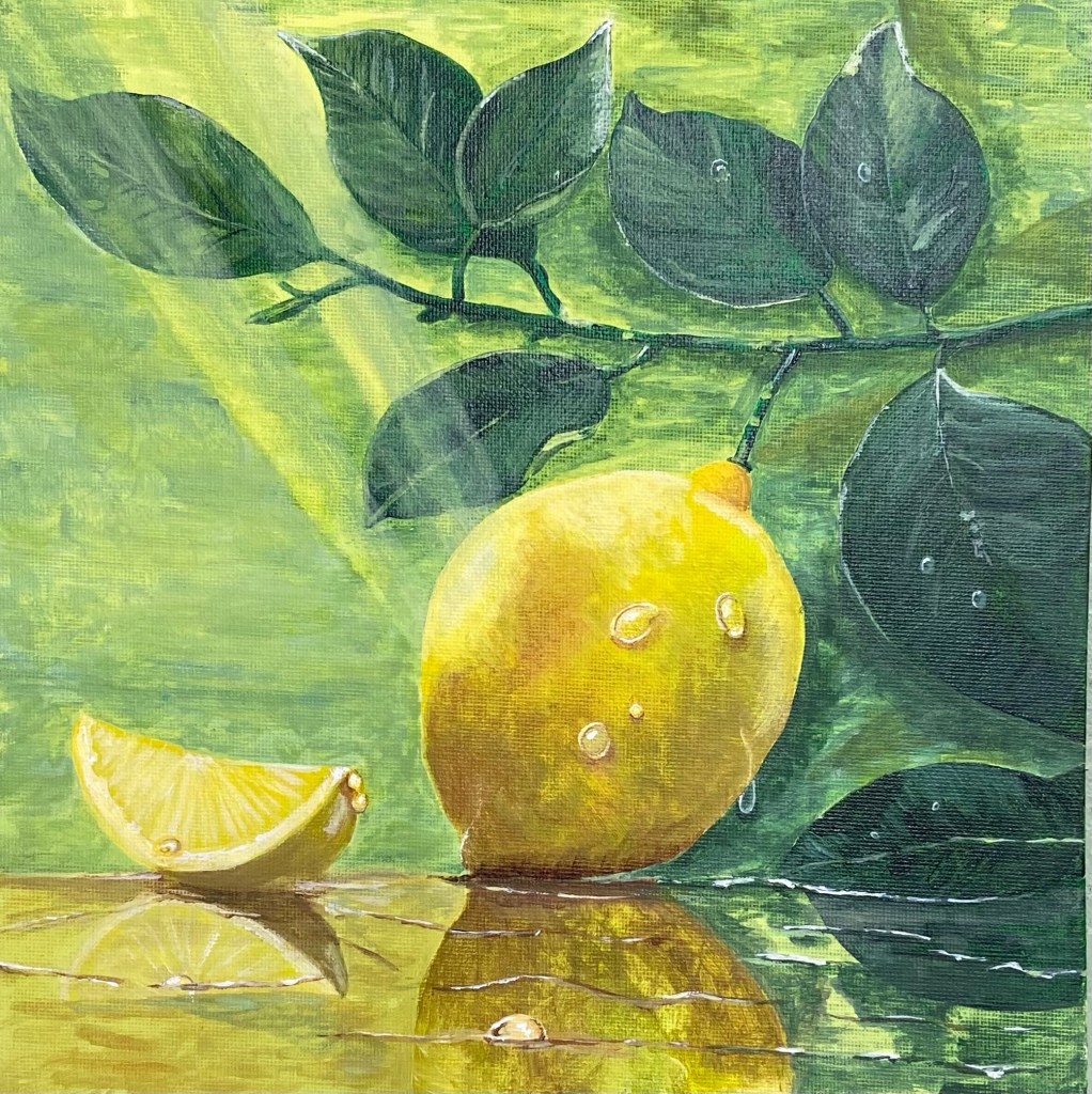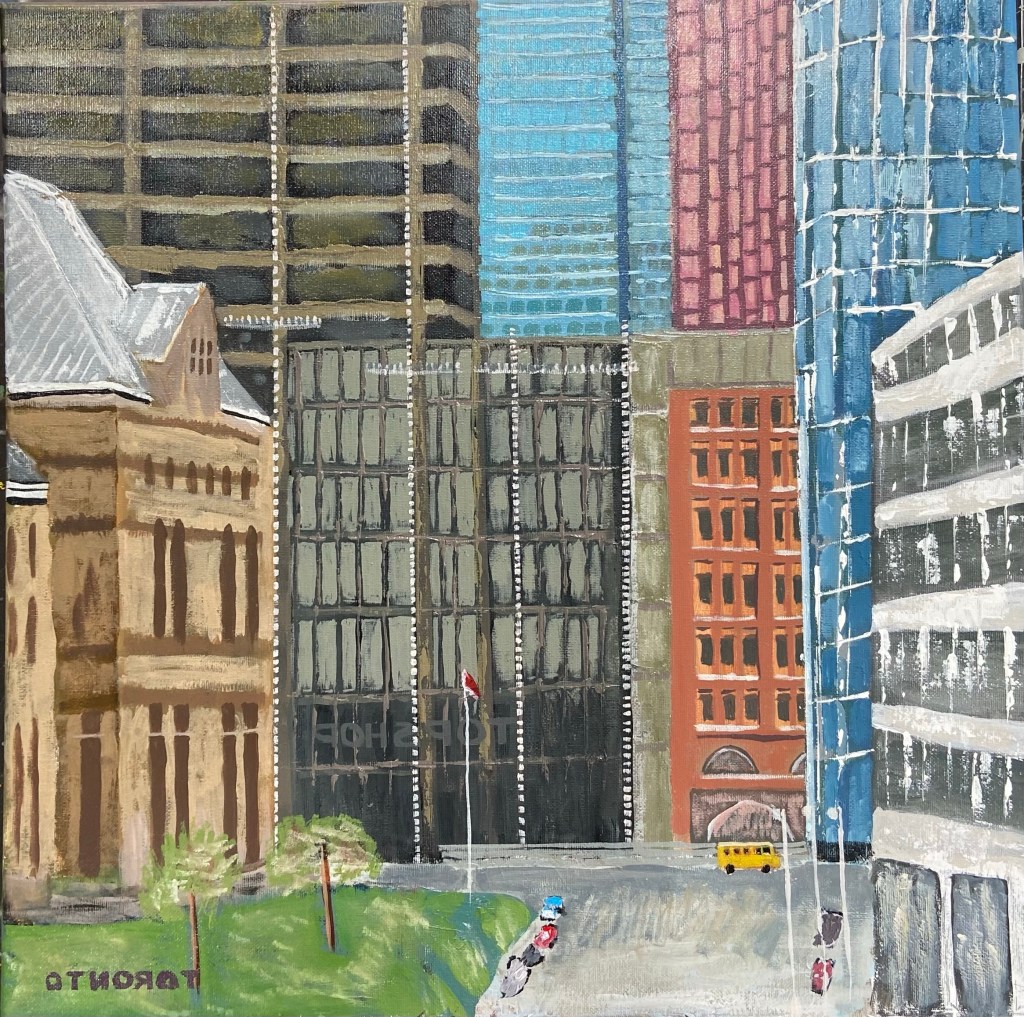 Het eerste schilderij (50-50cm)van Karin, mooi gedaan, in het echt zijn de strepen wel horizontaal!