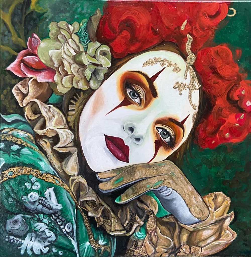 Carnaval 50-50cm acryl op doek €100,-
