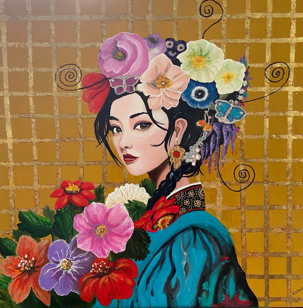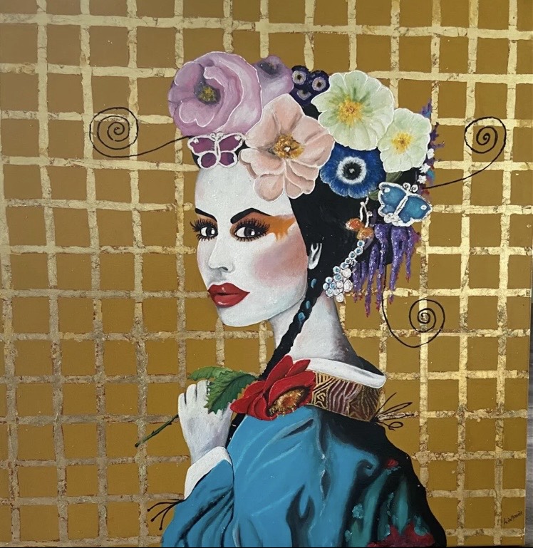 Japanse vrouw , oud schilderij veranderd. 8o-80 cm €350,-
