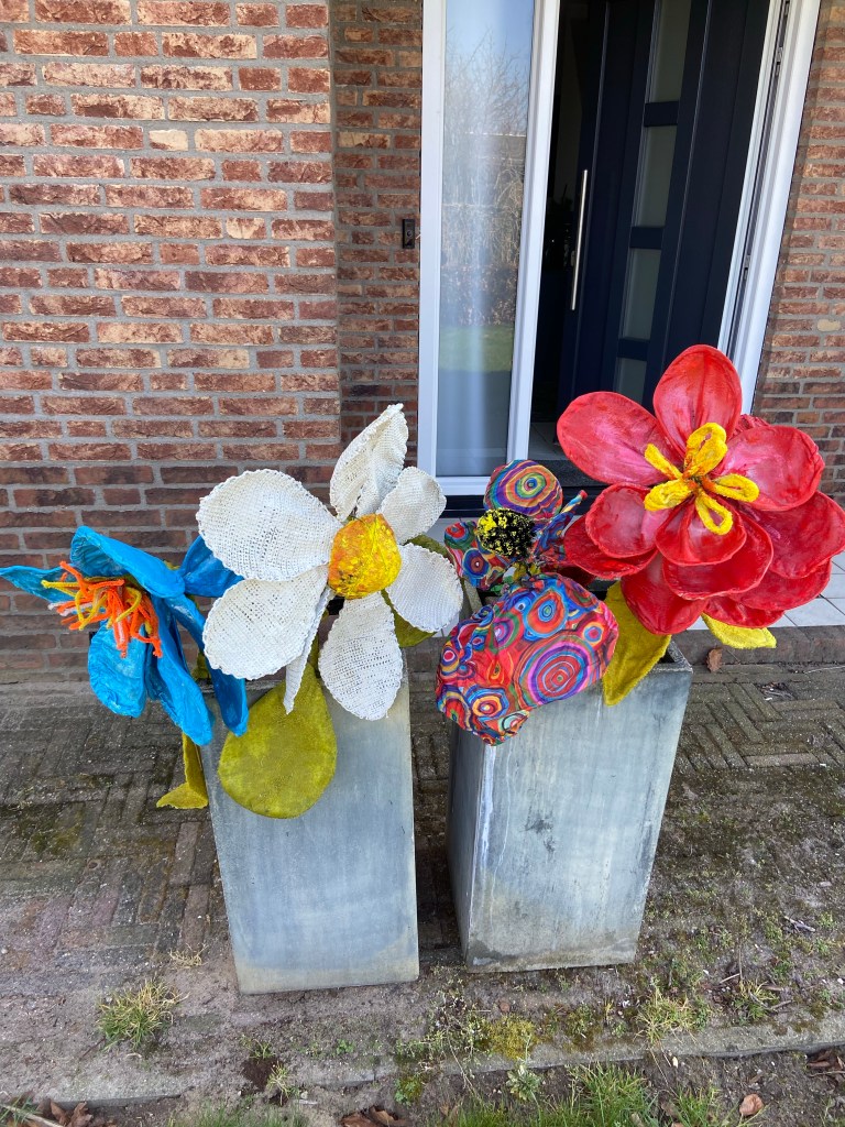 Even wat anders bloemen van haakwerk met powertex en vazen.