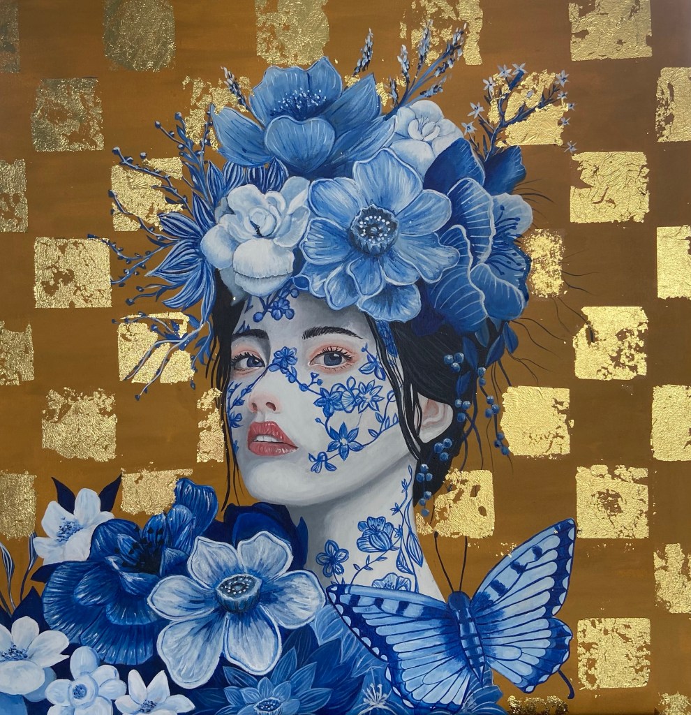Delfts blauwe dame 80-80 cm€350,-