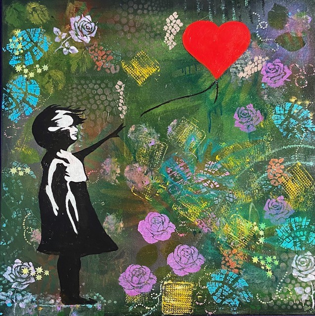Je werkt op een doek van minimaal 40-50 cm. Kies je voor een groter doek dan komen erextra kosten bij. Je maakt een kleurrijke ondergrond en gaat met allerlei materialen aan de slag. Je kan afdrukken maken met allerlei materialen zoals schoenen , bladeren etc of je plakt er allerlei materialen ( stof ,papier, hout voorwerpen etc) op.